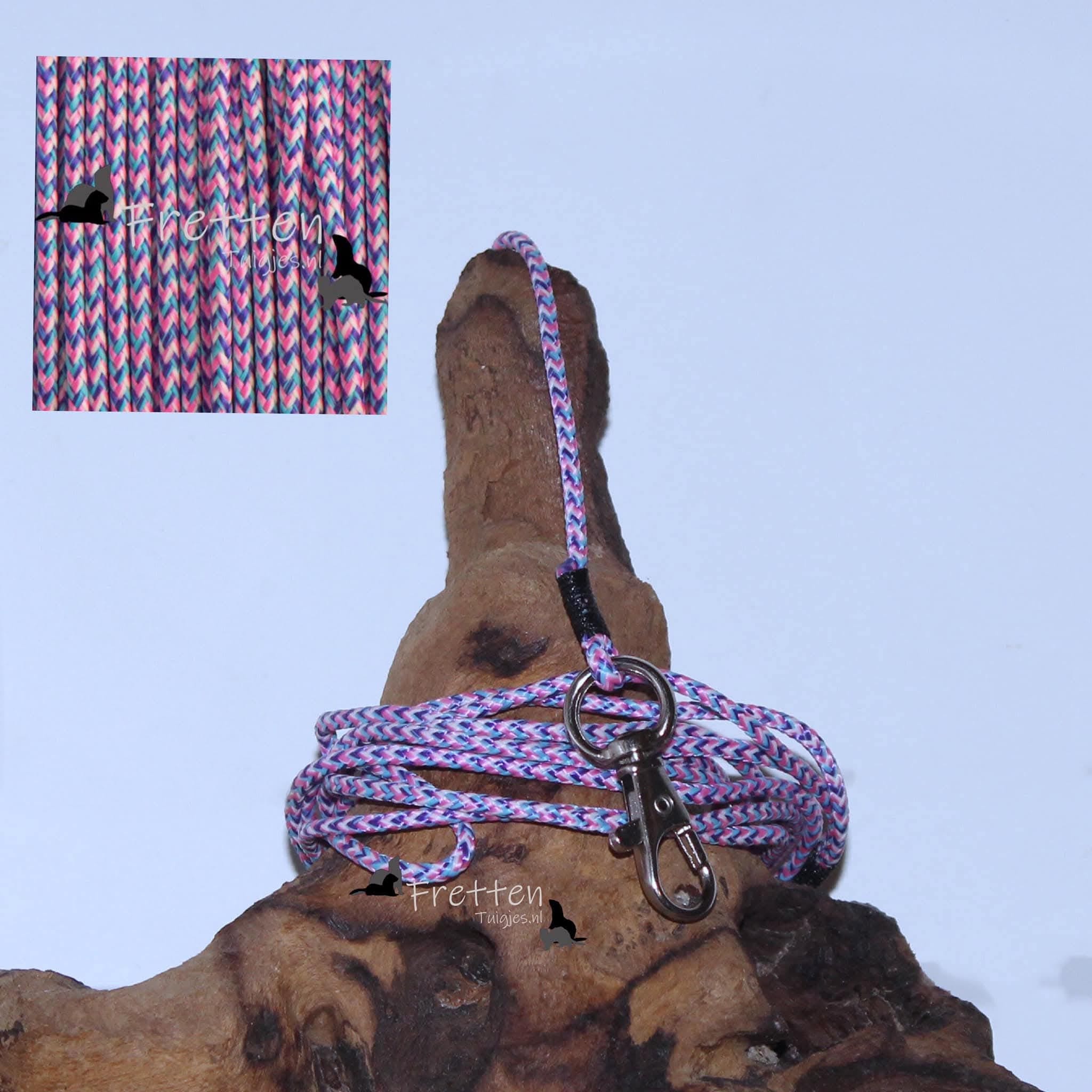 De 8-vorm zorgt voor een gelijkmatige drukverdeling en voorkomt dat je fret of vogel uit het tuigje kan glippen.